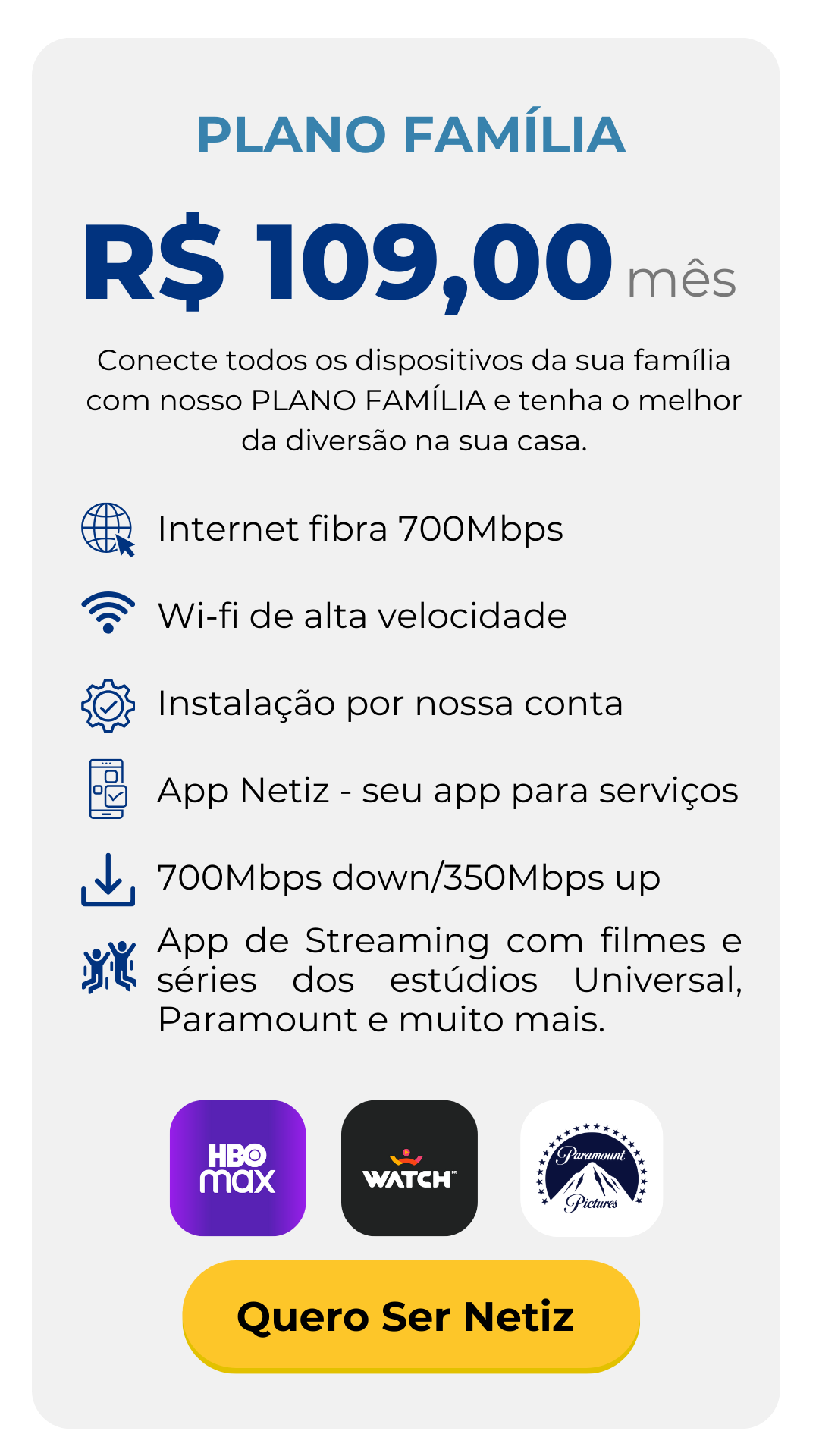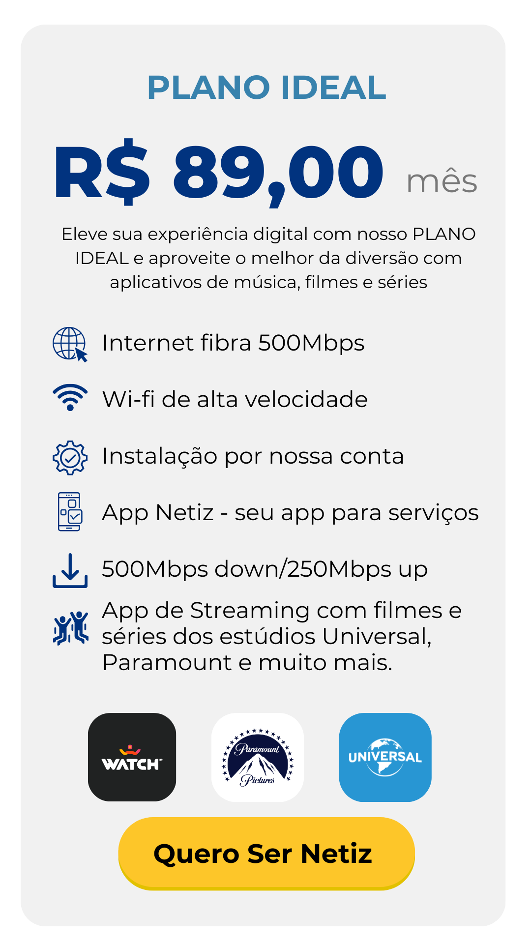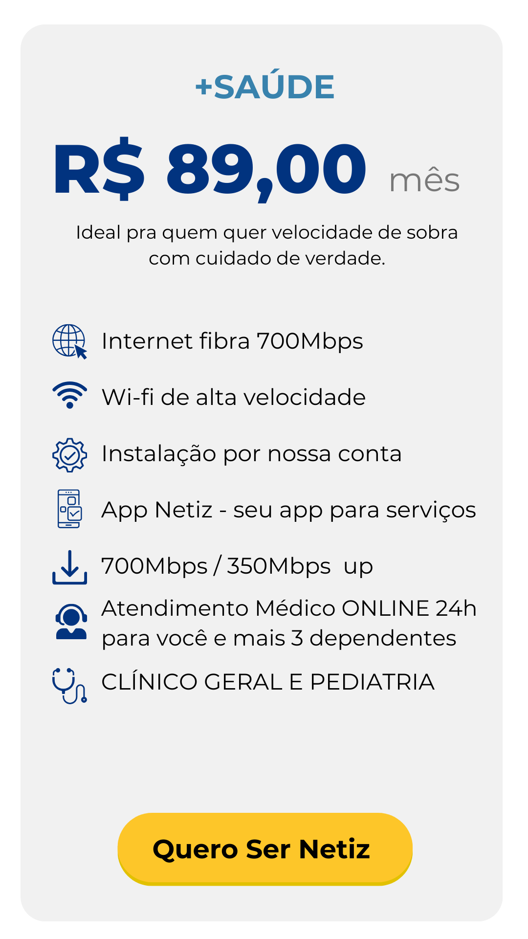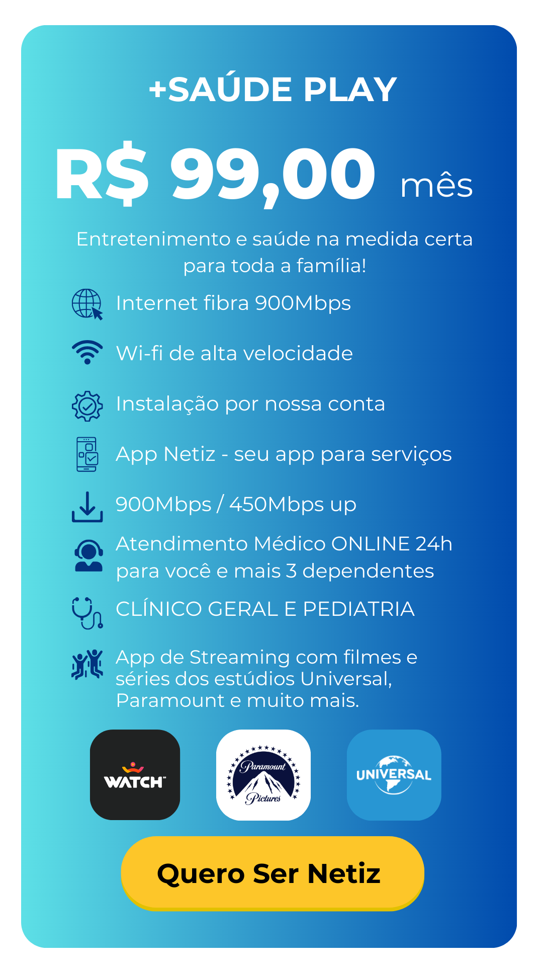 Tudo isso com a leveza e economia que só a Netiz tem.